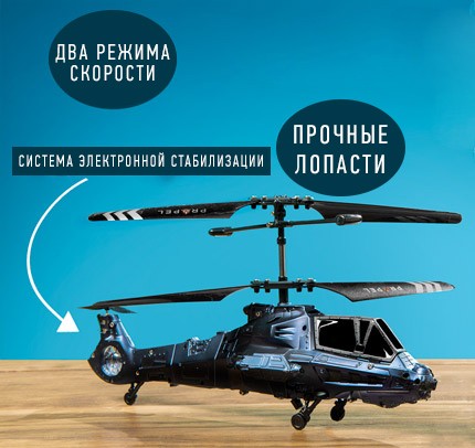 Вертолеты Soomo Mirage Gladiator Combat с функцией воздушного боя превратят твою комнату в зону боевых действий. Ты можешь вылететь из гостинной, сделать пару крутых разворотов на кухне или же выполнить мягкую посадку на вертолетной площадке письменного стола!